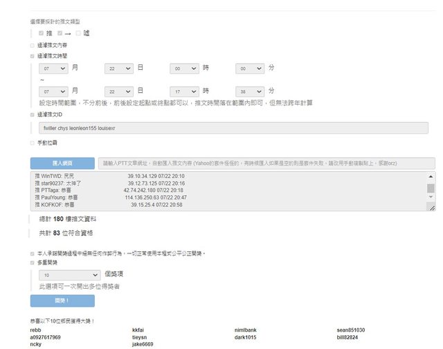 無重複帳號參與抽獎