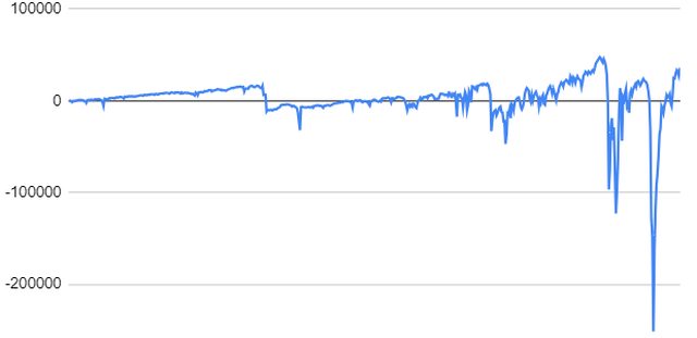 採用送死倍壓法, 前後放了35萬本金下去凹