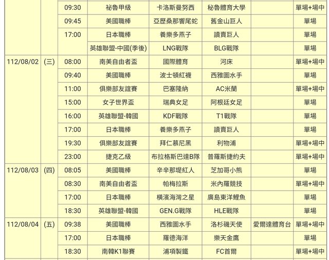 標題[情報] 112-08-01單場場中
