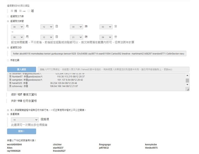 抽十位 無重複帳號參與抽獎