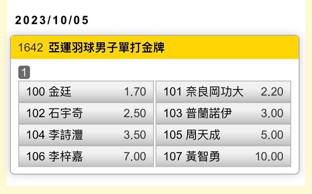 標題[羽球]「天九牌」亞運李梓嘉