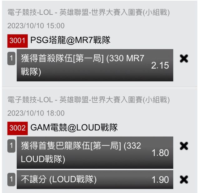 昨天睡死沒推到BDS首殺可惜 今天2場都是bo3垃圾剛不開大小 不然尾場建議歐印大分 15:00 PSG@R7 PSG先選邊 跟雷迪克推薦一樣 看好PCS上世界賽先nerf 不過要輸還是有點難 雖然也沒開勝負 推 R7 FB 2.15 18:00 GAM@LLL GAM先選邊 這場國外一開始很看好越南 到現在的平盤 所以跟前面說的一樣超級看好大分(沒開 越南久久沒打世界賽了 實力真的有點謎 沒有大分就推個高賠 推 LLL 首巴龍 1.8、LLL PK 1.9 https://i.imgur.com/7DPpxmR.jpg
