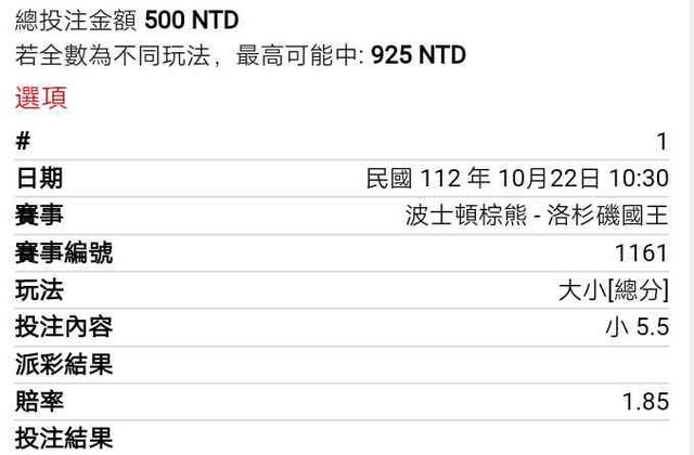 ----- Sent from MeowPtt on my vivo 1902 -- ※ 發信站: 批踢踢實業坊(web-ptt.tw), 來自: 106.64.121.220 (臺灣) ※ 文章網址: https://web-ptt.tw/SportLottery/M.1697935199.A.5F7