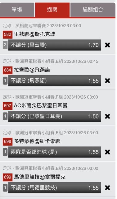 晚上歐冠一次串5