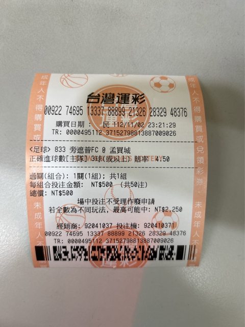 -- ※ 發信站: 批踢踢實業坊(web-ptt.tw), 來自: 123.195.124.77 (臺灣) ※ 文章網址: https://web-ptt.tw/SportLottery/M.1698938663.A.AE0