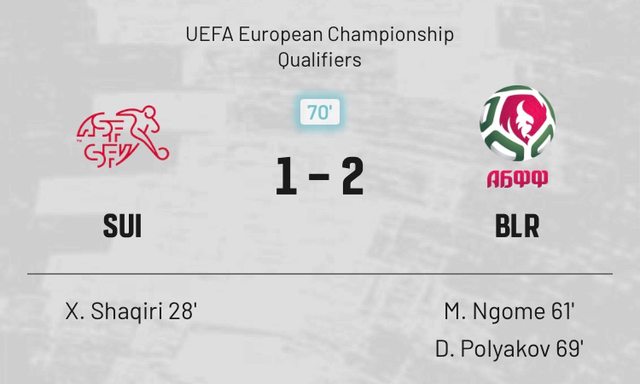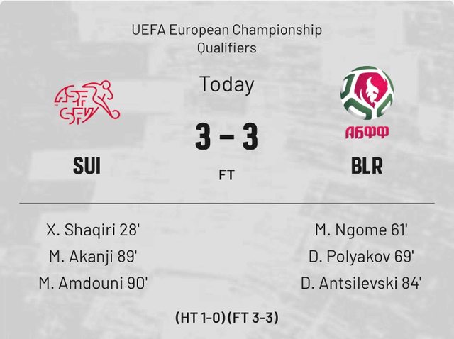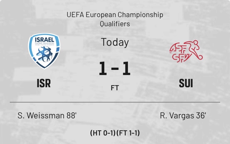 奇人異士輩出故稱神 有趣在不時見證奇跡 歡迎來到PTT運彩板 - 主 後衛Abada╳ 後衛Revivo╳ 後衛Yehezkel╳ 客 後衛Lotomba╳ 後衛Widmer╳ 中場Sow╳ 中場Zuber╳ 前鋒Embolo╳ 前鋒Seferovic╳ 瑞士入得失得今屆七輪4W3D不敗 以色列國內陷於戰事外賽爭取寶貴積分 國際賽改於中立場地匈牙利Pancho Stadium舉辦 以色列 和 4.00 -- ※ 發信站: 批踢踢實業坊(web-ptt.tw), 來自: 111.83.194.2 (臺灣) ※ 文章網址: https://web-ptt.tw/SportLottery/M.1700064936.A.FBA