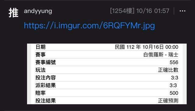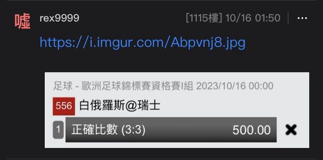 國家隊比賽週經典回顧: https://web-ptt.tw/SportLottery/M.1697383981.A.8DE 運彩國際賽場中史上首次滿賠 白俄羅斯連續三場資格賽零球 https://i.imgur.com/HhKcouf.jpg