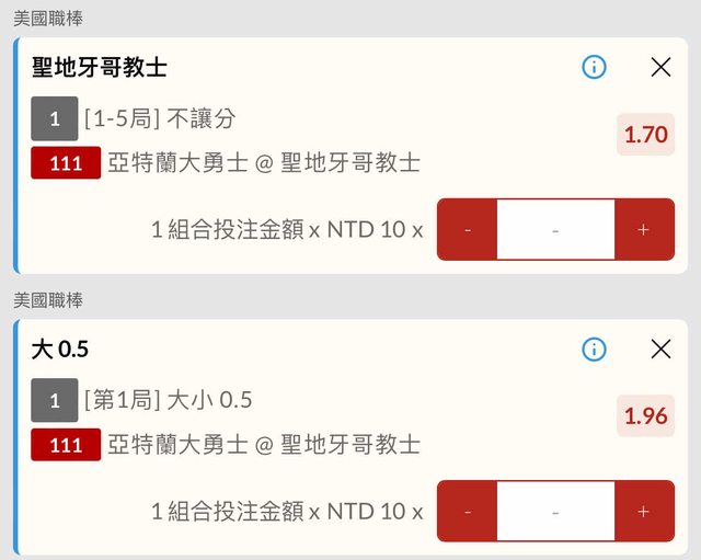 有場中,上半局看好教士,第一局買個樂透!