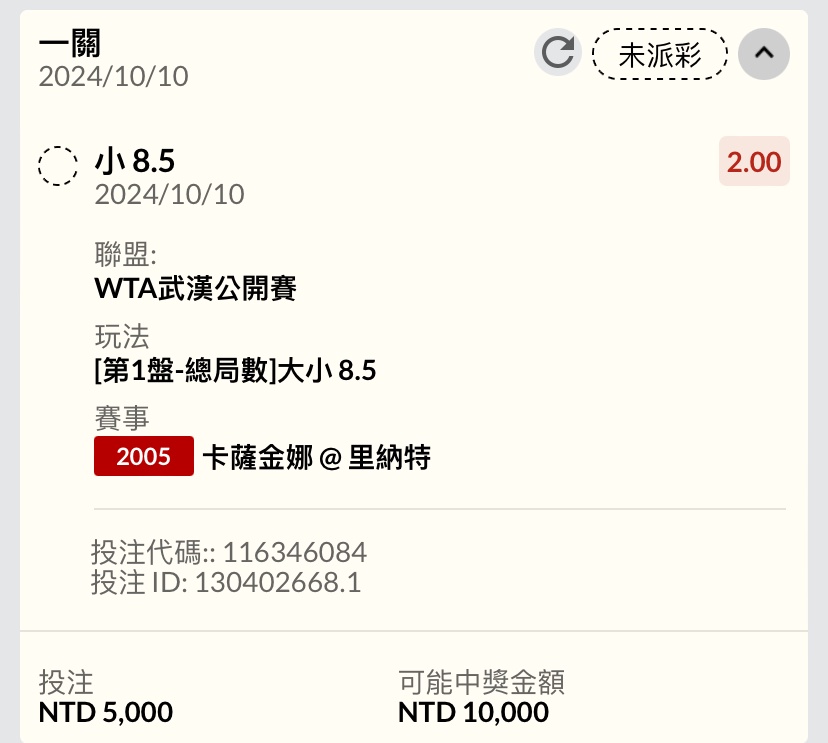 → lampar5566: 剛剛2-2 里納特直落二還有1.68 1.34.121.59 10/10 12:08