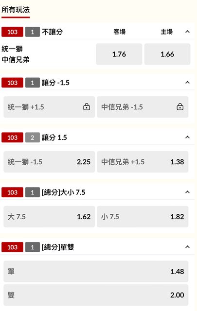 推 rockyshen: 初盤是統一1.82 中信1.62 101.9.64.62 10/25 16:21