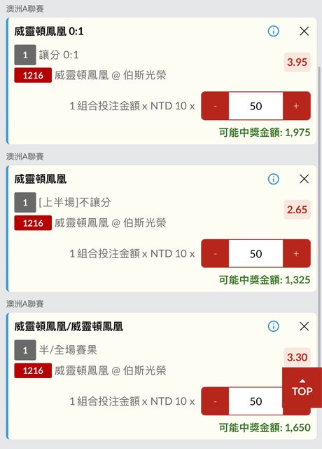 威靈頓鳳凰 0:1 3.95