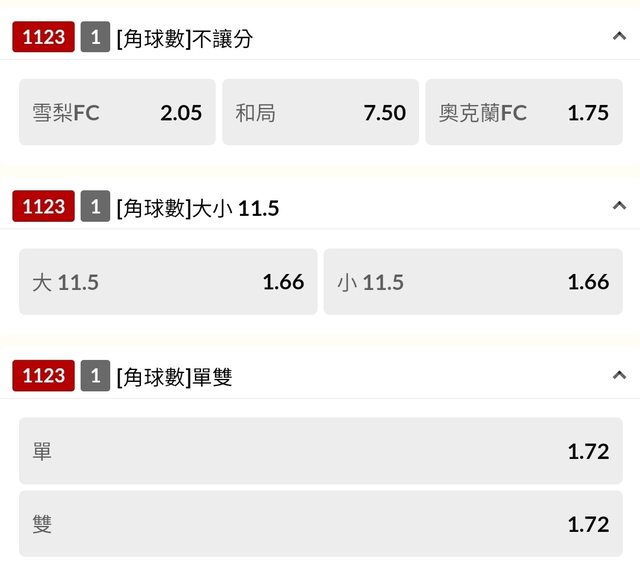 看了真的很扯 連角球大小賠率都可以只剩1.66 唯一合法謝謝指教是嗎? https://i.imgur.com/0Y7tYzV.jpeg