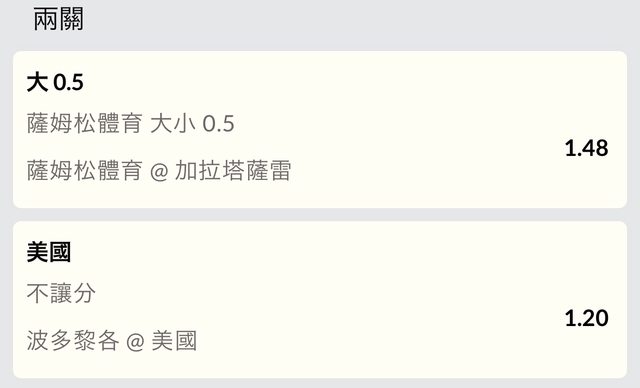 主推 薩姆松 全場大0.5 1.48