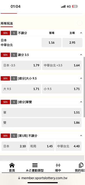 如果要下中華隊穩輸賠率