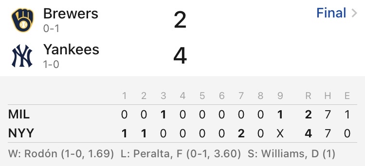→ rex9999: 流湯兒一早起見洋基開幕勝 111.83.180.146 03/28 07:09