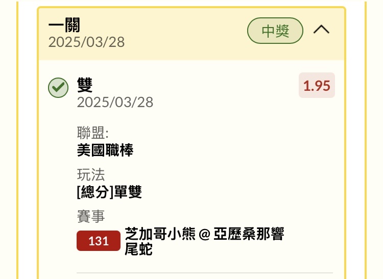 推 chukenren: 棒球平盤還有1.75 網球只有1.66 幹118.165.107.122 03/28 10:45