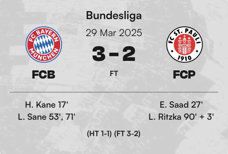 聖保利2:1拜仁慕尼黑 40.00