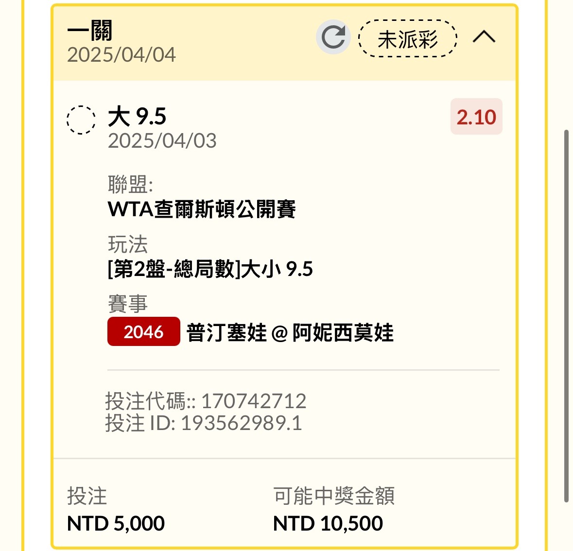 推 Fanatio: 第二盤9.5大 1.78 感覺不錯 122.118.32.58 04/03 23:55