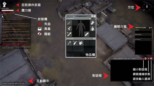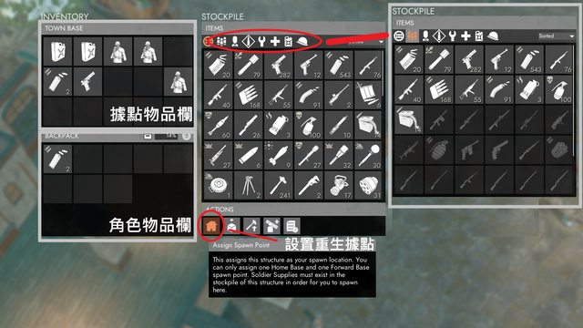 : : 不論是選擇前線或是後勤,進入戰場後,首先得從據點取得物資及裝備,