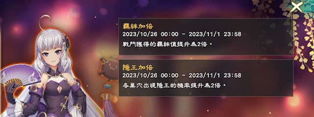 老實說,雖然最近到11/1日前,開放了隱王加倍和羈絆加倍。