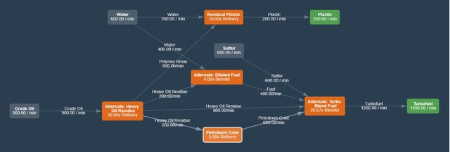 將一個高品質硫磺礦點超頻250%得到的600硫磺/分來製作出1200/分的渦輪石油