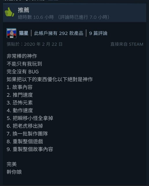 去steam討論區抱怨了但官方華麗的無視我,只跟其他人繼續吵…