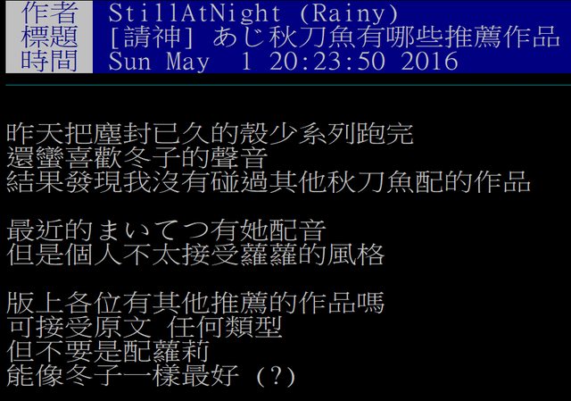 就是想聽一下當年那位朽木冬子的聲音。