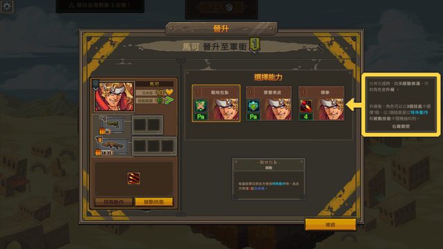 過關後角色升級取得能力,武器不能更換只能加配件獲得額外能力。