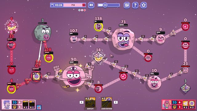 古老的玩法,從自己的星球連線出去佔領別的星球,加速兵力生產,再佔領更多,直到殲