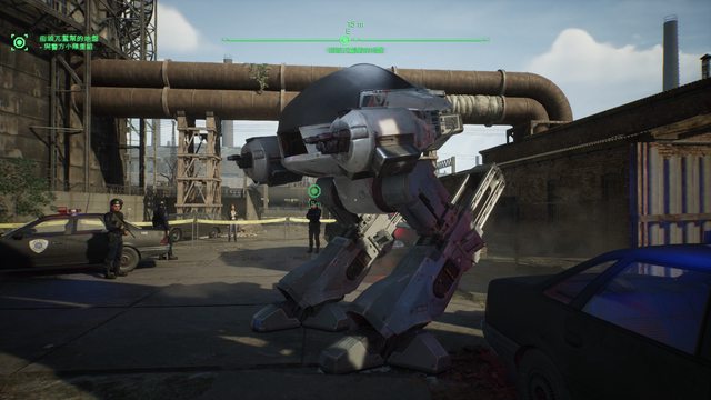 遊戲中看來依舊巨大又充滿壓迫感的ED-209,因為目前是友軍,還可以仔細觀察各種細節