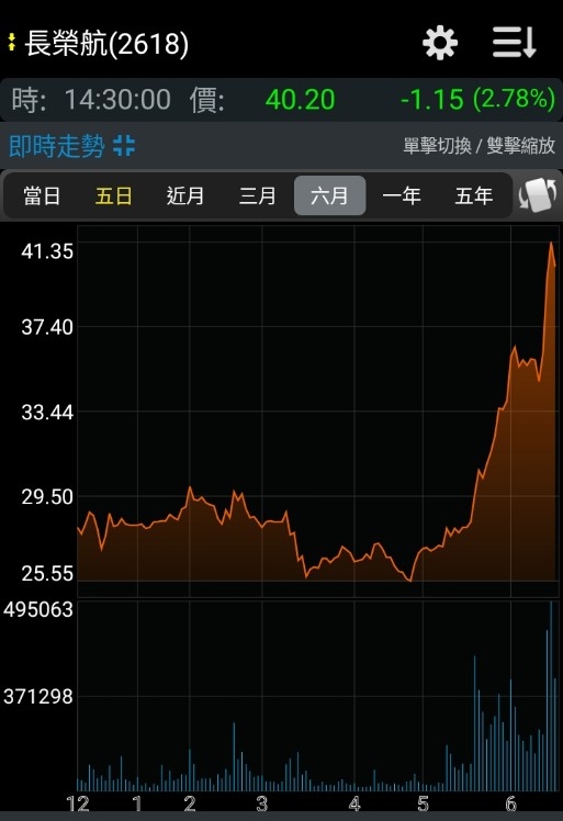 → zxcvb1234522: Q1財報發佈,股價一路嘎到40塊,每年航空股的大行 06/18 07:21