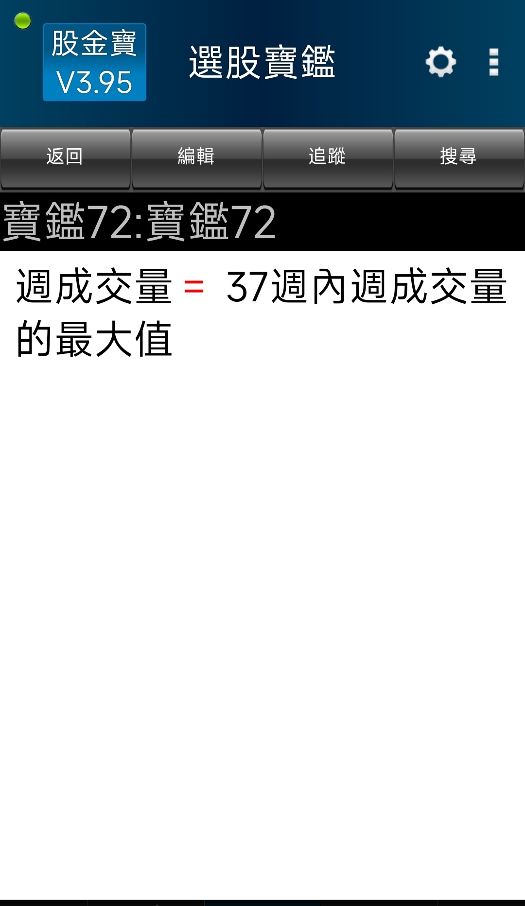 → splendidpoem: 如文中的創37週新高股票,那就篩選【當週量等於37 06/22 09:05