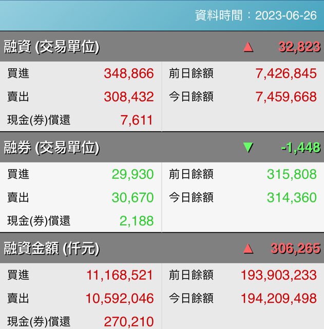 標題[情報] 112年06月26日信用交易統計