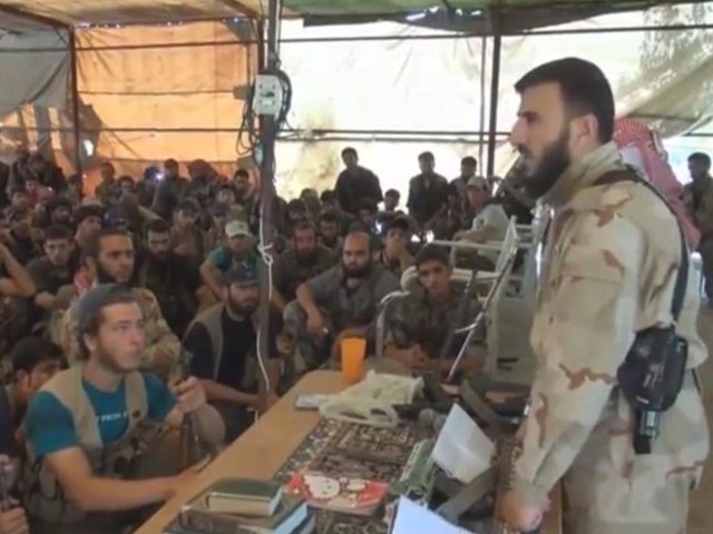 5. 敘利亞內戰中反政府武裝組織的前領導人Zahran Alloush,在對部隊講話時,他講台
