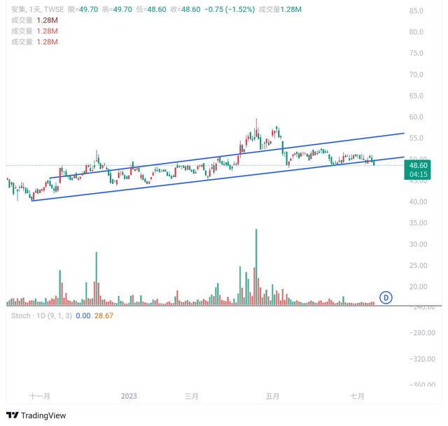 安集這隻股票從去年10月開始穩定在趨勢線中間整盪