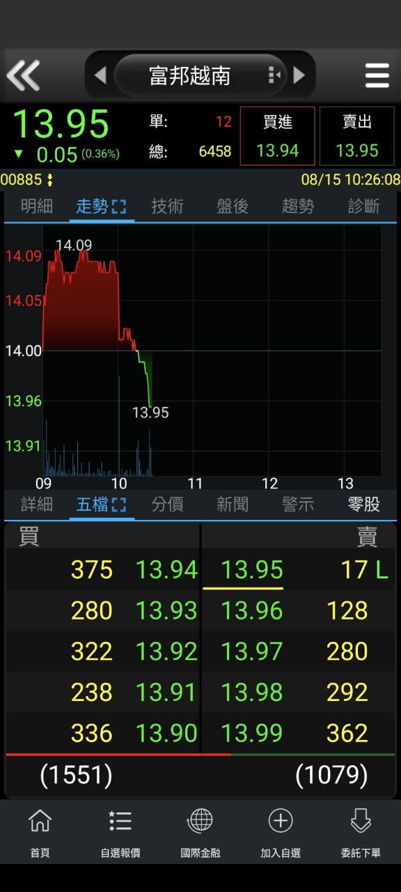 lolpklol0975: 出貨了吧 00885 14塊 套牢區很重 08/15 10:29