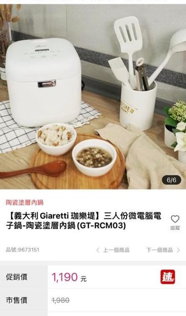 1. 全新3人份電子鍋Giaretti (GT-RCM03)