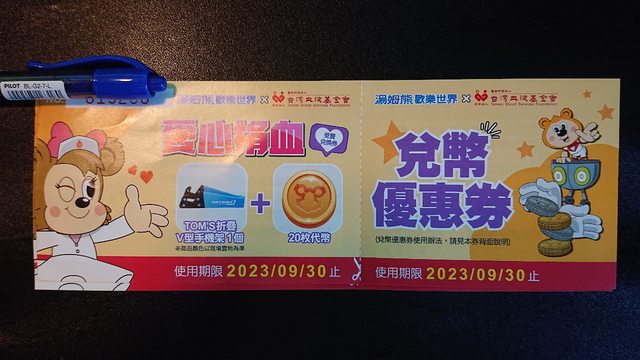 物品說明:捐血中心贈品,沒時間去玩,有效期限2023/09/30止