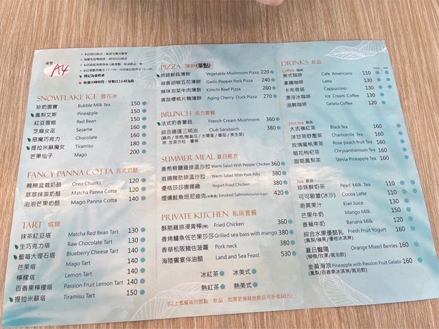 餐點有鹹食跟甜食兩張,因為太想吃甜點