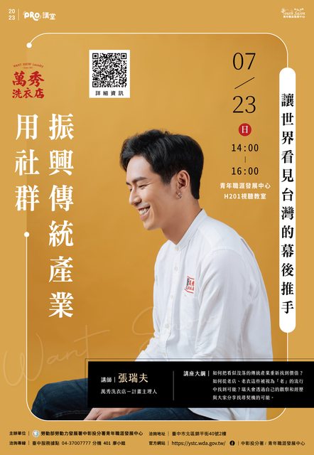 標題[資訊] 7/23萬秀洗衣店張瑞夫/振興傳產免費講座