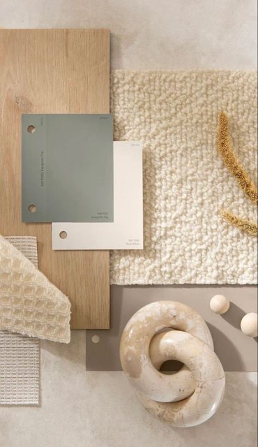 把地板色卡,油漆色卡,窗簾布色還有你的擺件放在一起,是不是就馬上能想像你空間搭