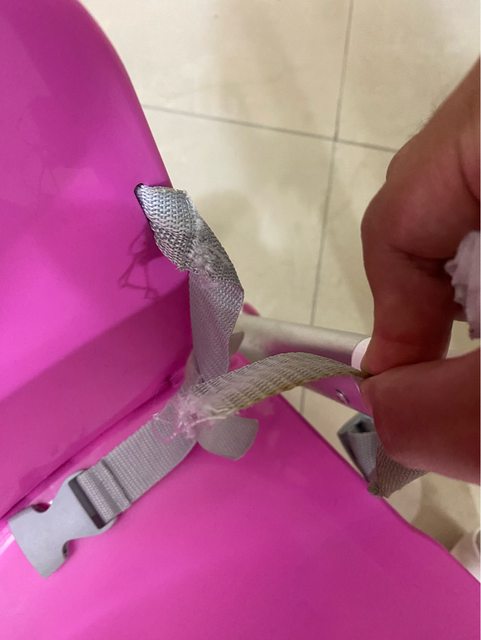 面向餐椅(桌)右邊角落安全帶破損,