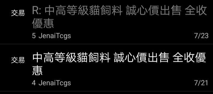 標題Re: [交易] 中高等級貓飼料 誠心價出售 全收優惠
