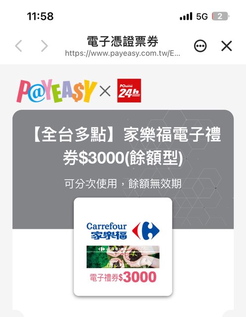 家樂福即享券 $2760 (92折)