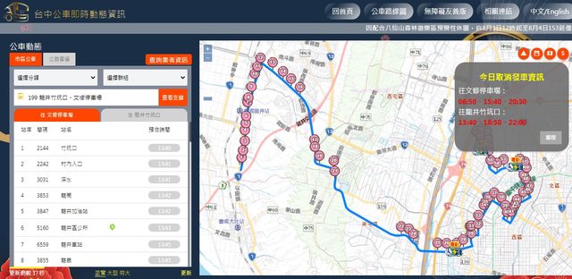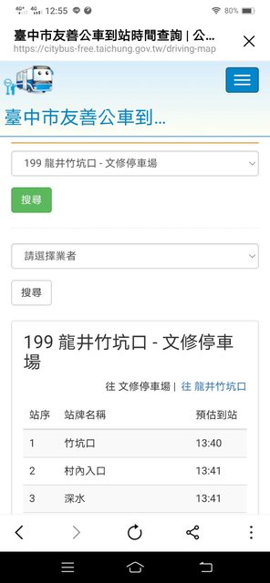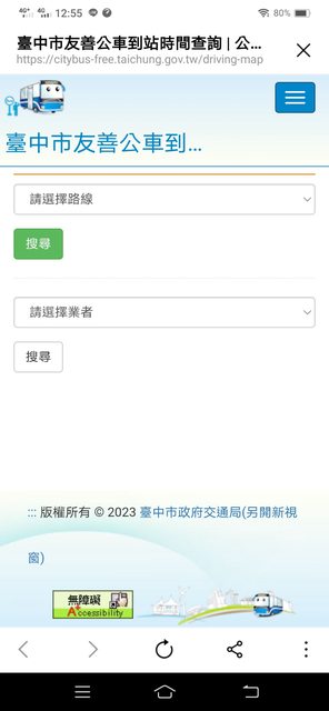 打個比方,如果有人問:哪牌的果汁最純、最健康? 我會回答:能夠的話,建議直接吃水果。 所以說,我會直接建議你用"台中市政府交通局"的網頁版, 我手邊有3款"台中市政府交通局"的網頁版, 想要詳細第一手訊息,最建議第一款,會直接顯示當日最新通阻訊息"今日取消發車資訊"。 ;想陽春型沒附地圖,建議第三款。 1.
