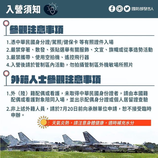 (2)非上述外籍人員,請於7月20日前向清泉崗基地申請並檢附相關資料(含身分職務、姓名