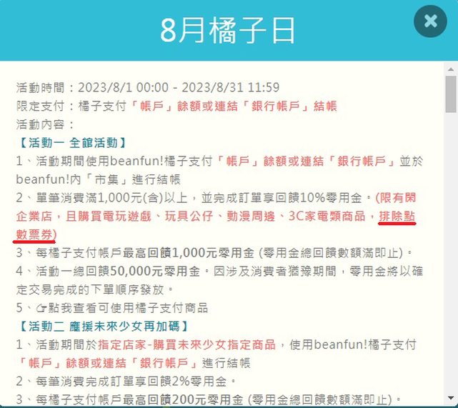 記得別用"橘子支付"付款,因排除點數票券,無法拿到10%回饋。