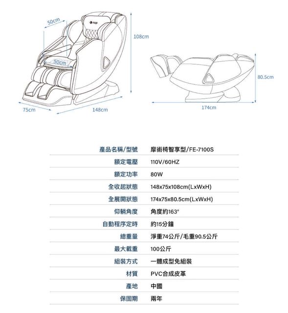 FUJI 摩術椅智享型 FE-7100S(AI按摩椅;AI智慧按摩;網路獨家;AI智能感測;腰部溫熱)