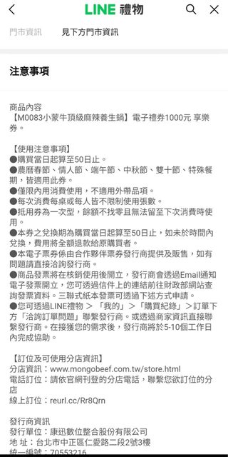 標題[交易] 小蒙牛頂級麻辣養生鍋 電子禮券1000元