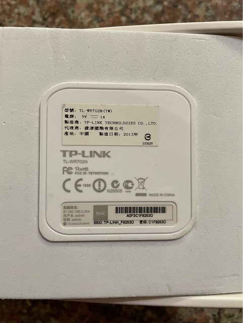 物品A TP LINK TL-WR702N迷你路由器/100元